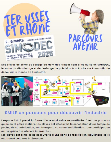 Des élèves de 3ème du collège du Mont des Princes sont allés au salon SIMODEC, le salon du décolletage et de l’usinage de précision à la Roche sur Foron afin de